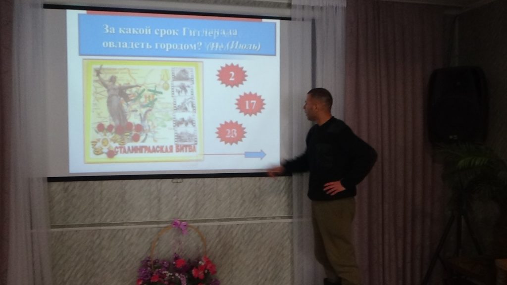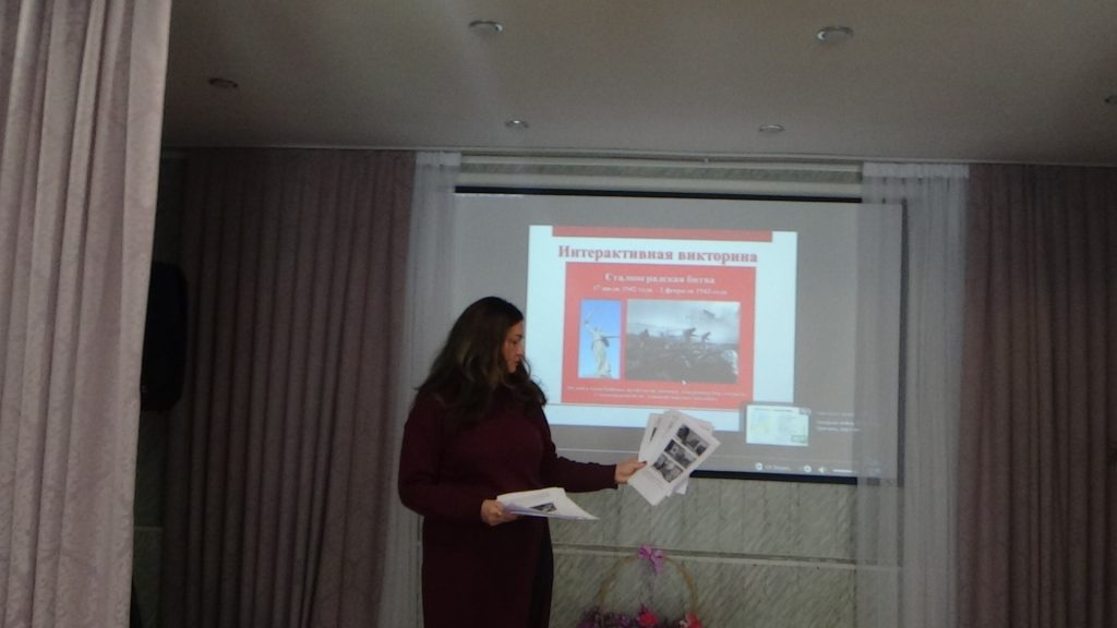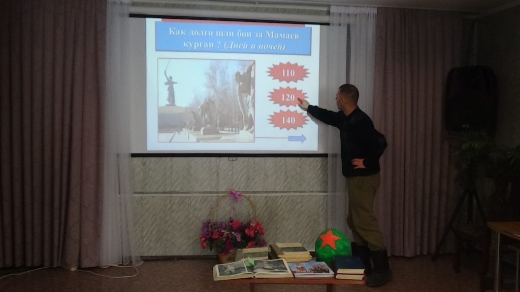 Сталинградская битва – это событие, которому суждено вечно жить в памяти народов. 2 февраля мы будем вспоминать День разгрома советской армией немецко – фашистских войск под Сталинградом. В преддверии этого памятного дня в нашем интернате прошла интерактивно – познавательная викторина «Сталинградский перелом». Ещё раз мы прошлись по памятным страницам истории, вспомнив отвагу, мужество воинов, проявившим свой героизм в борьбе за Родину. В конце мероприятия получатели социальных услуг посмотрели фильм «Сталинград».
