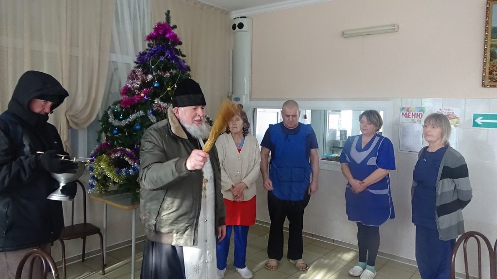 По традиции, 19 января к нам приехал попечитель и духовный наставник — Отец Игорь. Он рассказал о Великой святыне- крещенской воде, и ее исцеляющих свойствах. Провёл обряд водосвятия, окропил святой водой получателей социальных услуг, помещения и персонал учреждения.