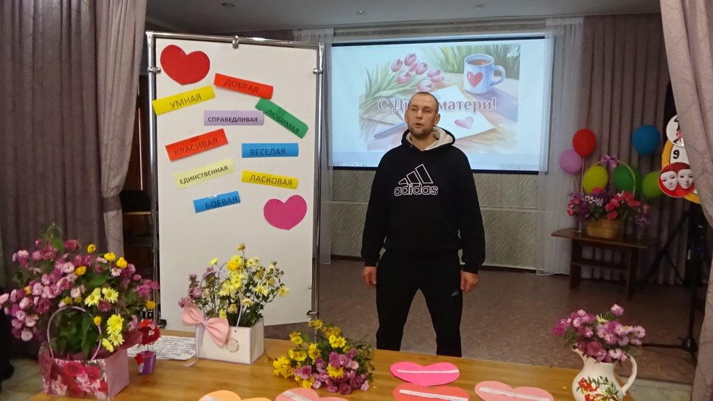 В преддверии замечательного доброго праздника Дня Матери, который в этом году празднуется 30 ноября, у нас в учреждении состоялось мероприятие « Моя мама». Участники мероприятия читали стихи о мамах, участвовали в конкурсах, рассказывали смешные и трогательные истории о своих мамах, бабушках, сотрудницах, которые уже не один год заботятся о них. В этот день дарят цветы и открытки, находят время для искренних слов благодарности! И мы желаем каждой маме сил, терпения, здоровья и бесконечной любви к своим детям!