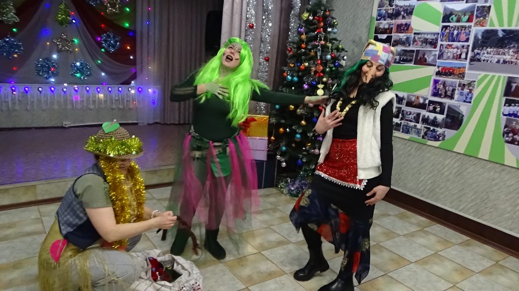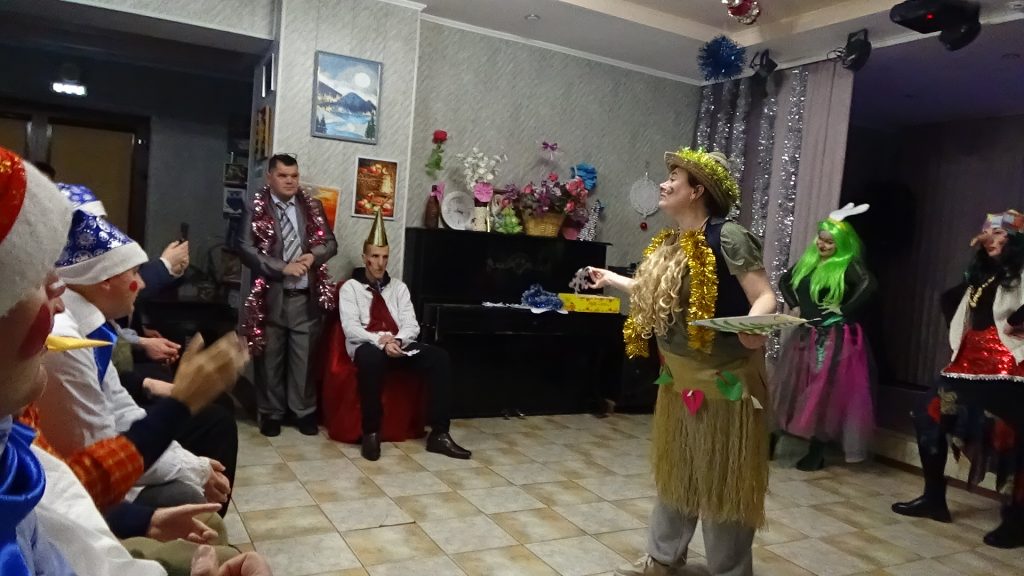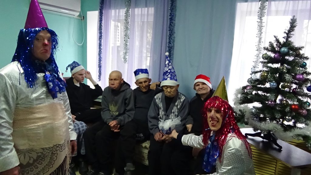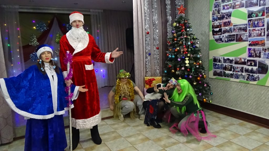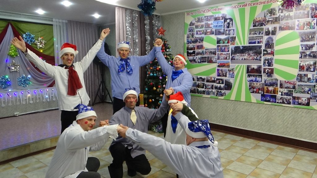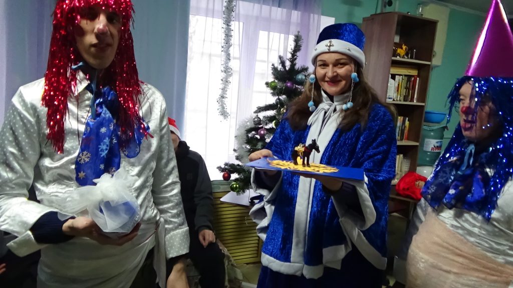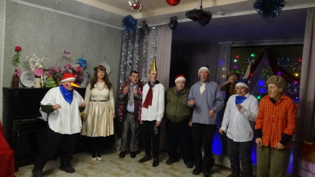 25декабря у нас в интернате состоялся праздничный вечер «Новогодний карнавал». С утра в отделениях милосердия добрые снеговички, Дед Мороз и Снегурочка поздравили получателей социальных услуг с наступающим Новым Годом и Рождеством! С большим удовольствием ребята играли в веселые игры, отгадывали загадки, пели песни и много шутили. Но, а вечером все дружно собрались на новогоднее представление, где «Кучка Злодеев» (Баба – Яга, Кикимора, и Леший), боролись с лошадкой Зорькой и ребятами за встречу Нового Года. Зло не хотело отступать и давать дорогу добру, нужно было много разгадывать загадок, участвовать в конкурсах, петь, танцевать и конечно веселиться! Молодцы ребята они так и сделали! Открыли новогодний бал, получили сладкие подарки от Деда Мороза и Снегурочки и дружно все вместе танцевали на новогодней дискотеке! С новым годом друзья! Счастья, здоровья и всего самого доброго!