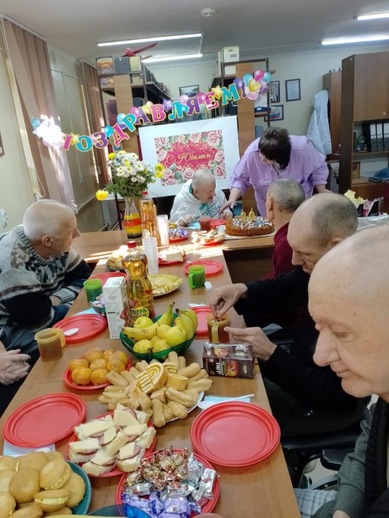 3 ноября в интернате прошло очень трогательное и приятное мероприятие. В этот день нашему проживающему Шмонину Леониду Ивановичу исполнилось 80 лет. Всеми уважаемый Лёнечка- так ласкового его называют, более 50 лет живет в интернате. Не смотря на то, что он глухонемой, он прекрасно ладит с проживающими и персоналом. В молодости был активным помощником — работал на кухне, в корпусах. Имея способности и навыки рисования, долгие годы был бессменным руководителем редколлегии. Его картины висят в корпусах, актовом зале, библиотеке интерната, их можно увидеть в министерстве труда и социальной защиты СК, а также многие картины он просто дарил.
